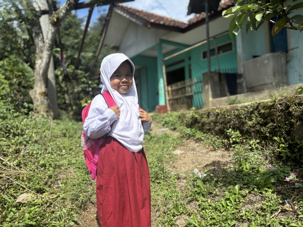 (Sri, anak yatim duafa penerima manfaat program yatim di Sinergi Foundation)
