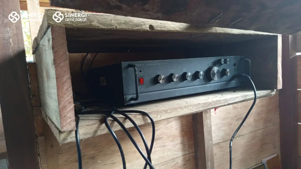 Untuk mengumandangkan azan, mereka mengandalkan amplifier bekas yang sempat terendam banjir. -
