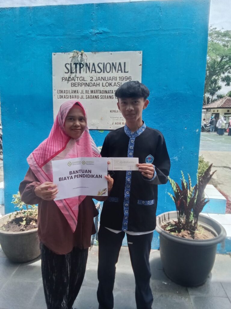 Alhamdulillah, pertolongan datang tepat saat dibutuhkan. Rezeki untuk membayar biaya pendidikan Kamaludin Allah titipkan melalui donasi Sahabat Sinergi. Bantuan tersebut mengangkat sedikit beban yang dipikul Pak Onda, sekaligus memberikan kesempatan bagi Kamaludin untuk melanjutkan sekolah dengan tenang.