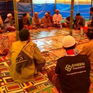 Para pengungsi ini saling berpelukan dan saling berbisik untuk saling mendoakan. “Terima kasih, kami terharu,” kata pria bersarung datang memeluk Aji Wira. Setelah menempuh perjalanan lebih dari empat jam, seakan ‘penderitaan’ Pak Aji sirna setelah melihat wajah saudaranya yang juga senasib.