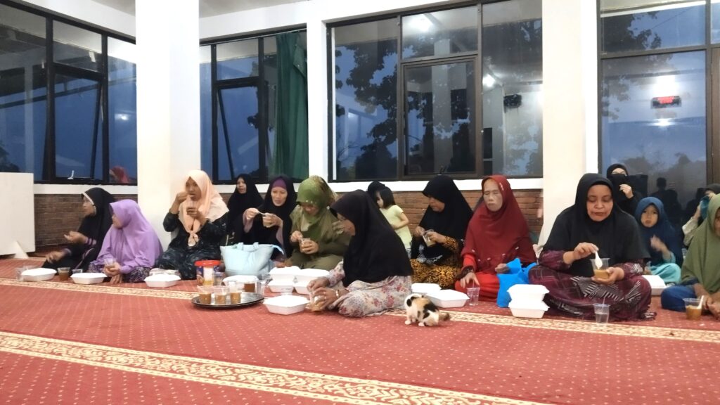 Suasana berbuka terbilang hangat dengan kebersamaan dan senda gurau yang mengisi tiap sudut masjid. Suasana yang sungguh berbanding terbalik dengan gelap dan dinginnya suhu di luar masjid akibat hujan deras.