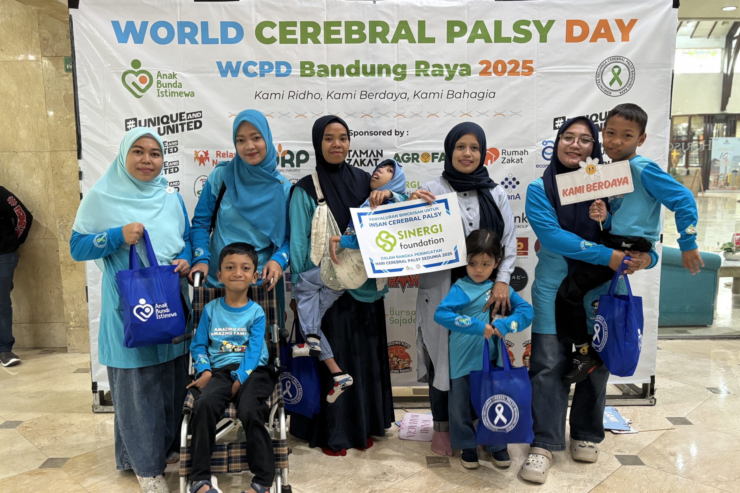 Sinergi Foundation turut mendukung pelaksanaan acara dengan hadir mendampingi 7 orang penerima manfaat dengan cerebral palsy. Selain itu, dukungan juga diberikan dalam bentuk dana untuk penyediaan ratusan bingkisan bagi para peserta yang hadir.